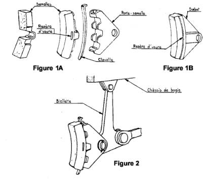 composition. Le nombre de semelles ou de sabots de frein par roue est variable.